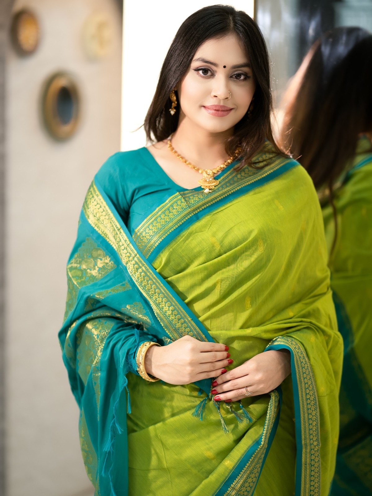 ✨প্রাকৃতিক রঙের সমন্বয় শাড়িতে এনে দেয় গ্রেসফুল লুক।